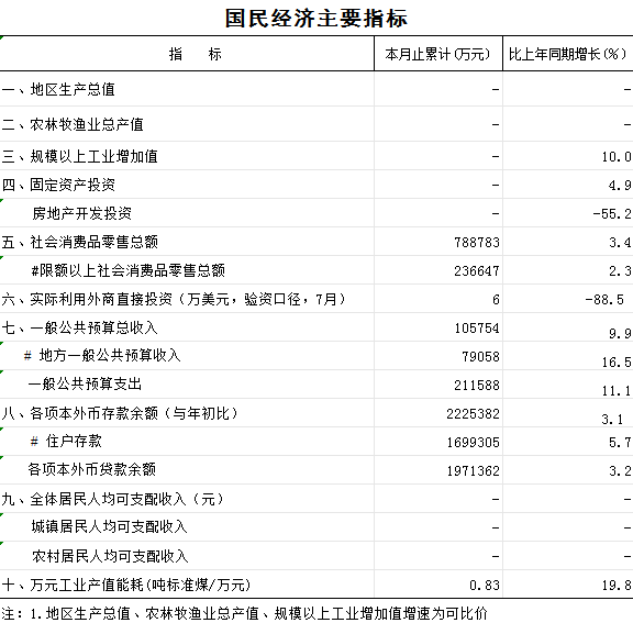 内容概述: 2025年8月漳平市国民经济主要指标