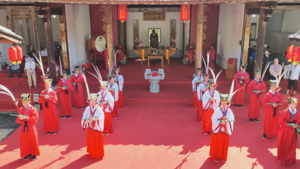 南洲书院祭奠至圣先师孔子,今年是第三年。祭祀典礼以108响鼓声与12记钟鸣揭开序幕,主祭率陪祭、执事依古礼盥洗启户。伴随雅乐,旗手执仪仗引舞生、献礼队列庄严入殿,全体人员三鞠躬恭迎先贤。主祭依序完成上香、献花篮、奉食飨及三献爵仪式,随后诵读祭文并焚文望燎。