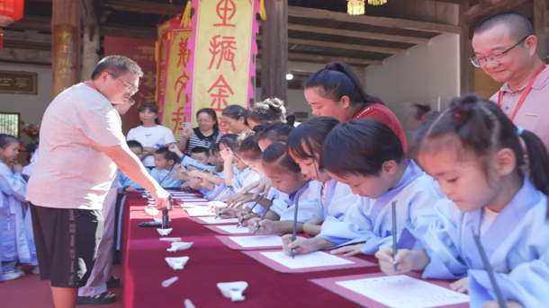 典礼在赞礼官“师道永存,斯文永昌”的宣告中礼成。随后,为溪南中心小学40名学童完成了朱砂启智与开笔破蒙,并组织溪南中学学生齐诵《论语》经典段落。